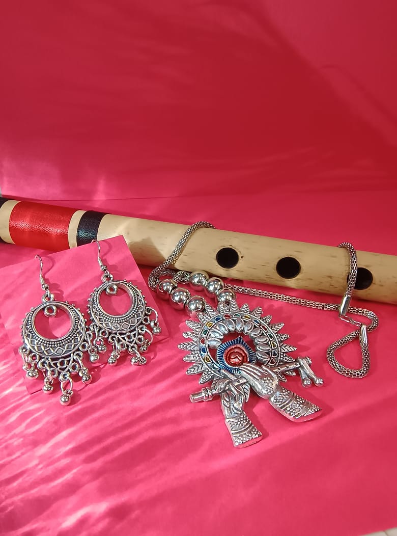 💫 Design: The centerpiece features a detailed pendant portraying Lord Krishna, showcasing fine artistry. The matching earrings and bracelet complement the necklace with traditional motifs and intricate patterns, completing the ethnic ensemble.