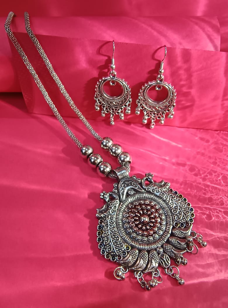 Mayantiie Oxidized Silver Necklace Jewellery Set