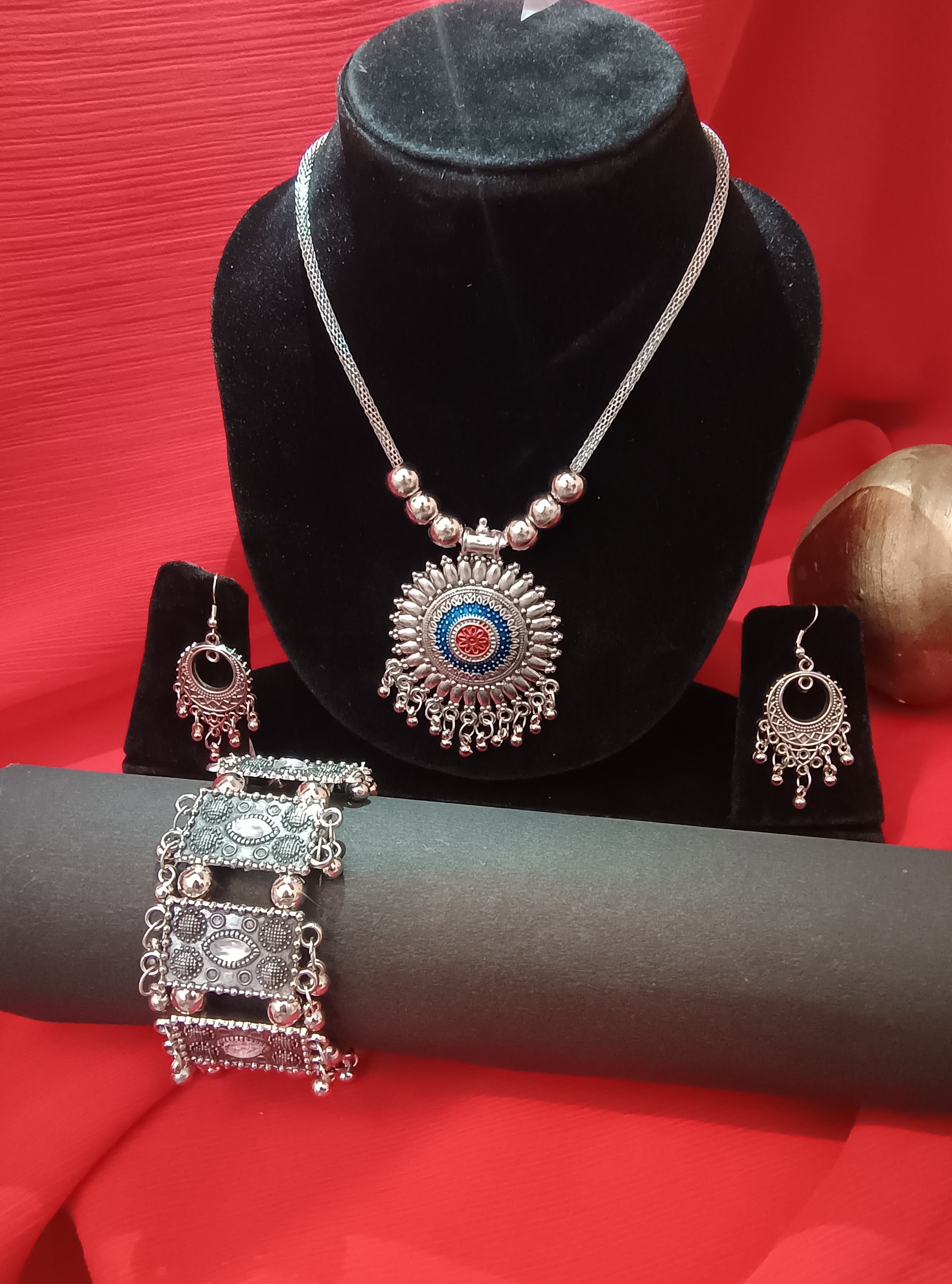 Mayantiie Oxidized Silver Jewelry Set – Pendant, Earrings & Bracelet Combo